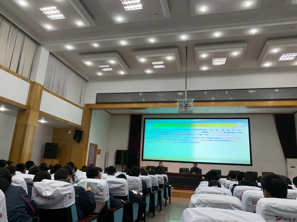 2018年11月29日,我院盐城招生宣传组赴盐城一中、盐城中学开展了“大学生科普讲座进校园”共建活动。437必赢会员中心张秋林副教授、437必赢会员中心辅导员李扬与两所中学的教务主任及高三年级班主任等进行了座谈交流。张秋林副教授应邀为六百余名中学生作了题为《大学&营销&人生》的科普讲座。