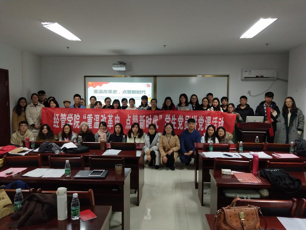 为庆祝中国共产党成立97周年,庆祝改革开放40周年,深入学习宣传贯彻习近平总书记系列重要讲话精神,准确把握党的十九大精神,12月7日437必赢会员中心举办“重温改革史,点赞新时代”研究生党课活动。学院党委卢忠菊副书记、研究生辅导员张杨以及60余位党员参加了此次活动。