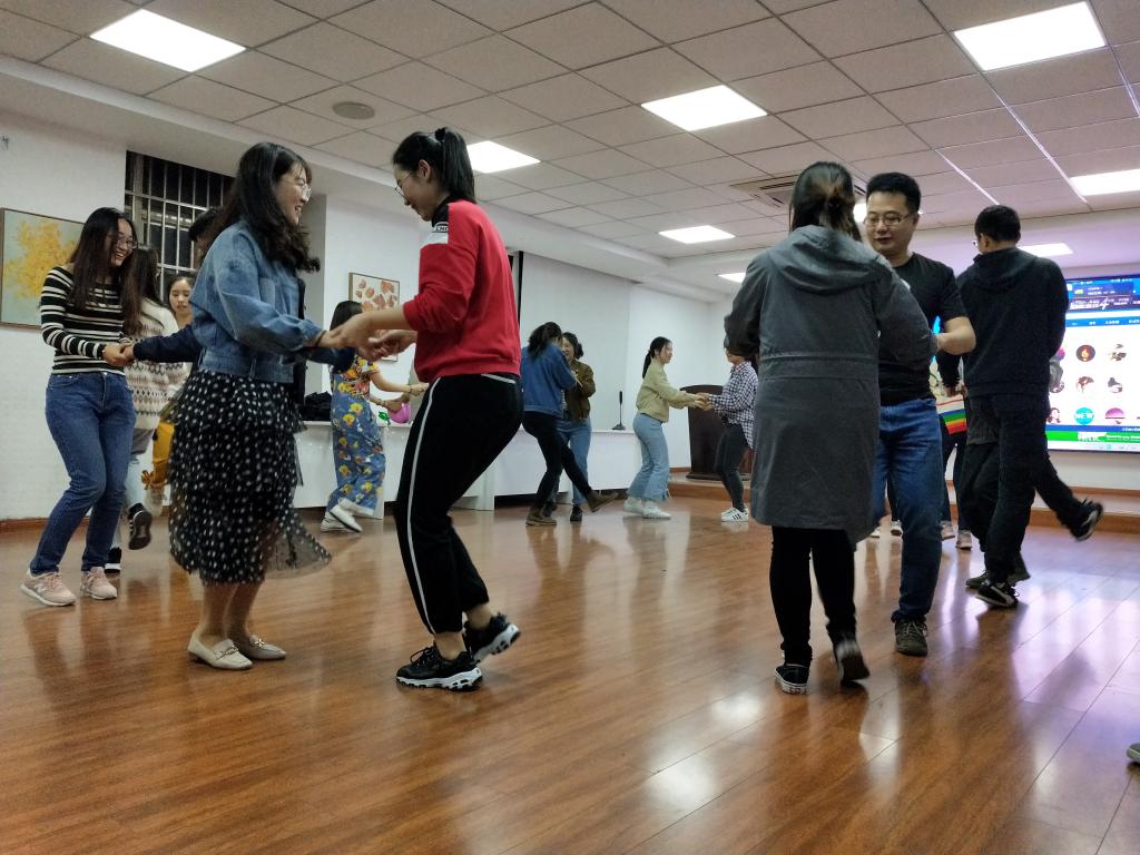 应同学们要求,为了更好地参与到舞会中来,徐老师又展示了两种群体舞蹈——兔子舞和恰恰。在大家积极的参与下,舞会的气氛被推向了又一个高潮。舞会的最后进行了三轮抽奖,共有5位幸运的同学抱走了奖品。舞会结束后全体同学和徐老师进行了合影留念。