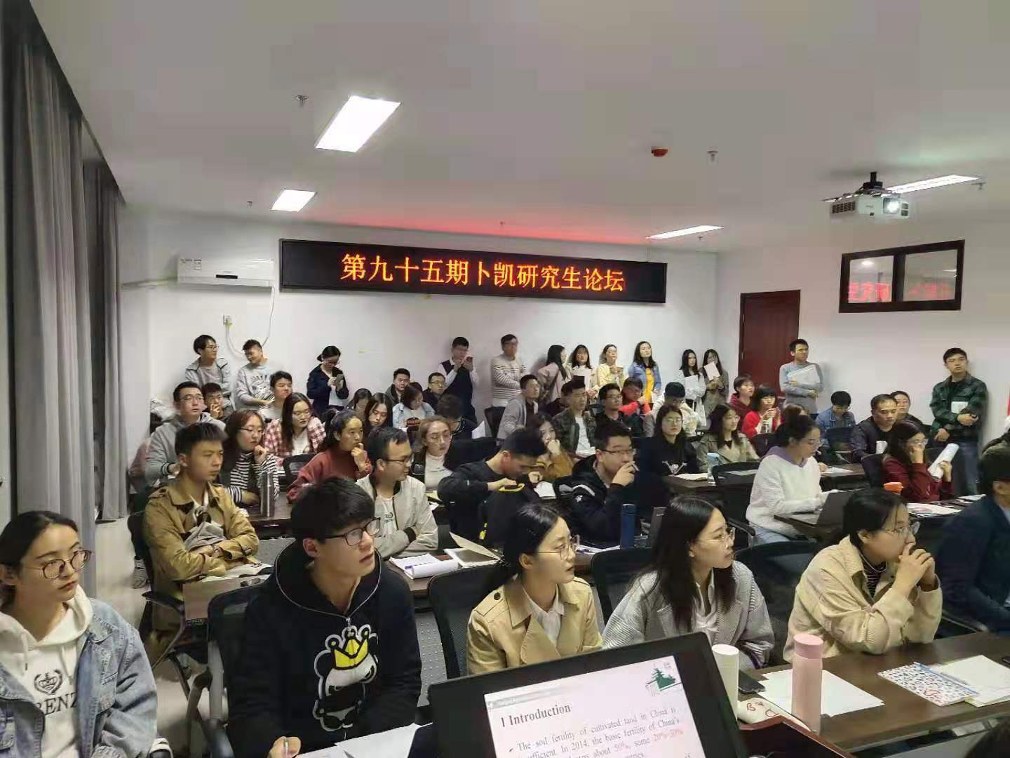 2019年10月16日晚7点,卜凯论坛暨“长三角研究生论坛”投稿评选特期在第三实验楼1101成功举办,章珂熔、周甜甜、安宁、韩子旭、魏政5位同学进行了精彩的汇报,纪月清老师、林光华老师予以细致的点评。