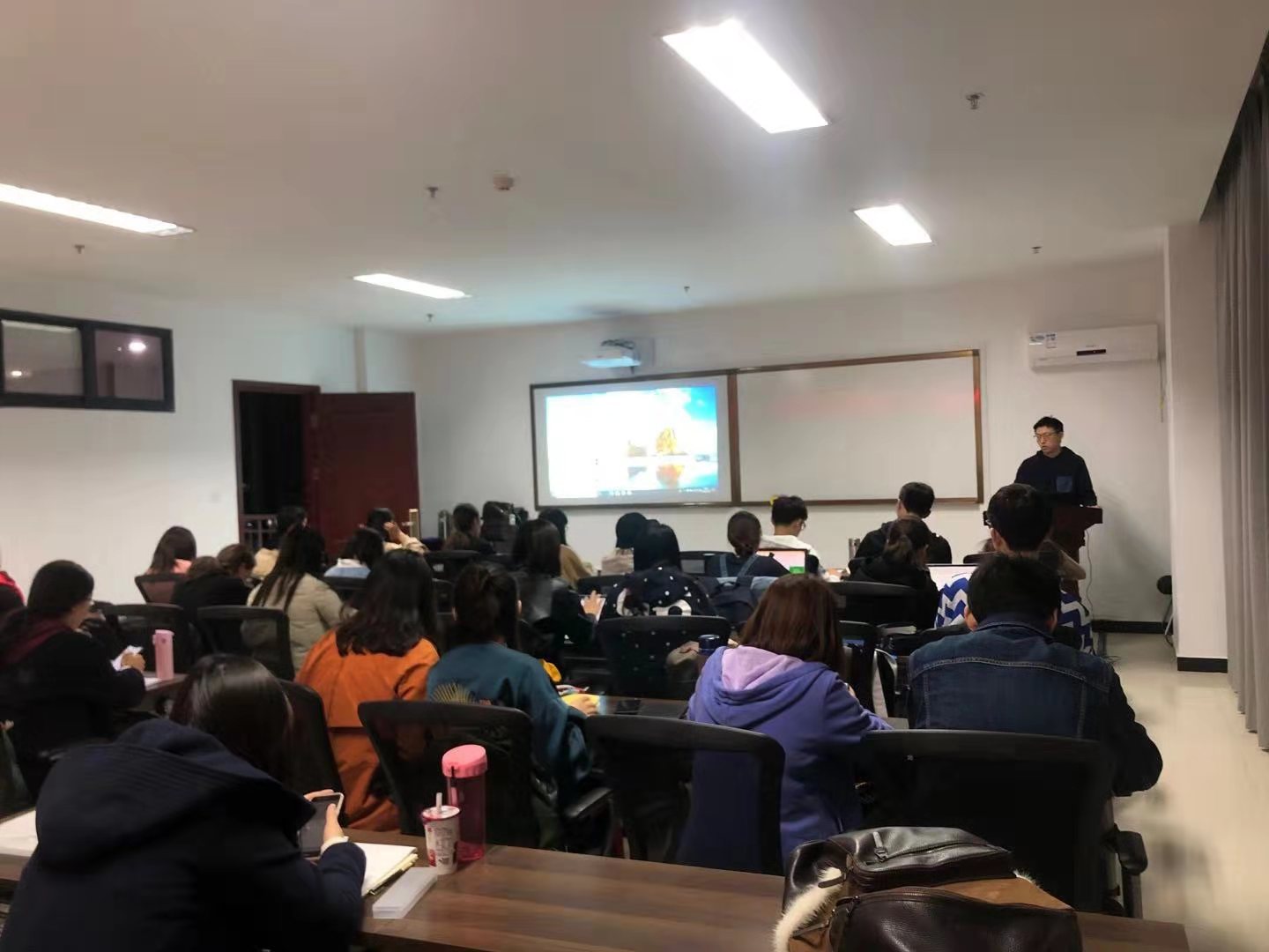 然后,2013级博士研究生杨泳冰学长以自己的亲身经历,从工作就业的角度向大家介绍了自己的成长历程。他说,自己在2014年曾担任学院研究生会主席,丰富的学生工作经验使他在日后的职场上处理各种问题时如鱼得水。工作后,觉得高校中纯粹的氛围可以让他更专心地做学术,于是从国企辞职又重新选择了高校去做教师,追逐自己的学术梦想,完成自己的人生使命。最后他还提醒研究生们,在校期间一定要注重培养自己的写作能力,对于职场新人来说,是极其重要的本领。