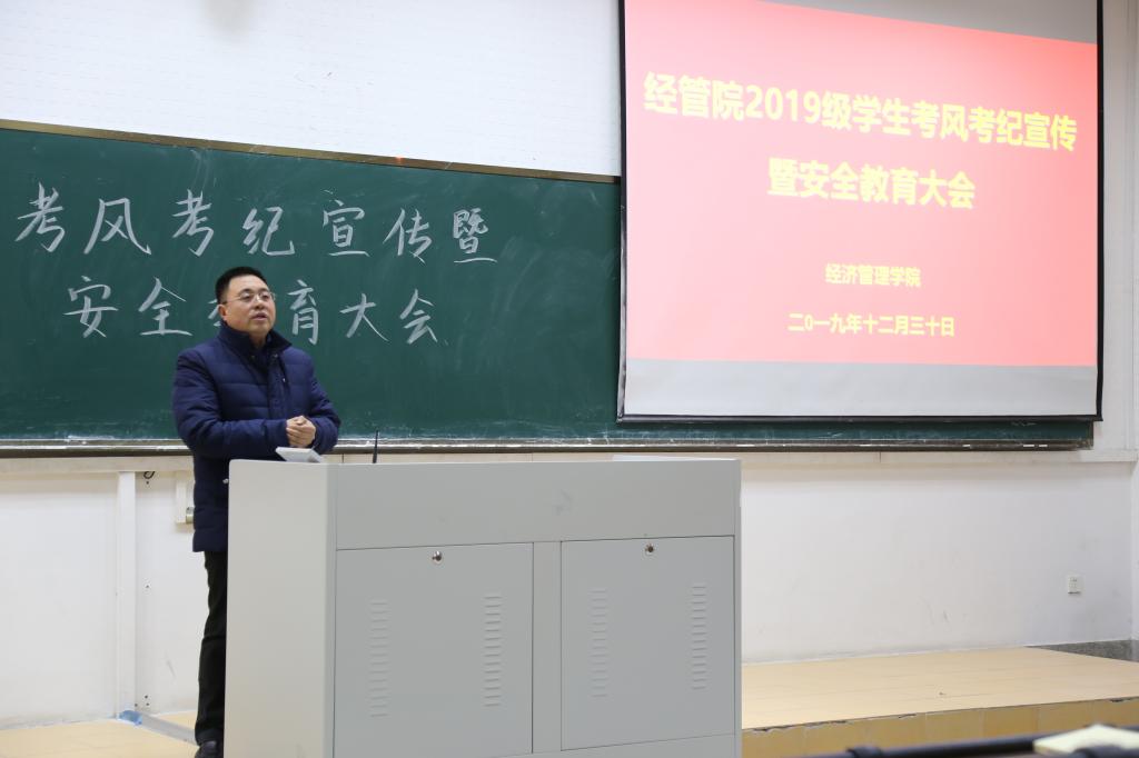 2019年12月30日,437必赢会员中心2019级学生考风考纪宣传暨安全教育大会在教学楼C201举行。437必赢会员中心党委副书记宋俊峰、本科生辅导员李扬、路行、宋春池出席会议。437必赢会员中心全体2019级本科生参加大会。