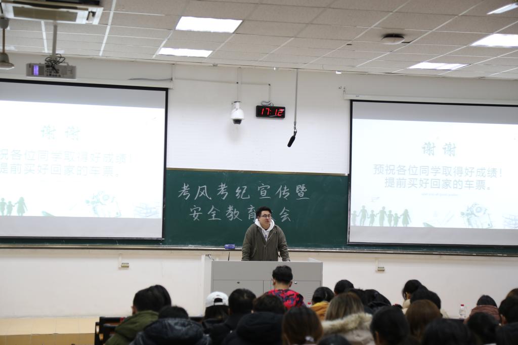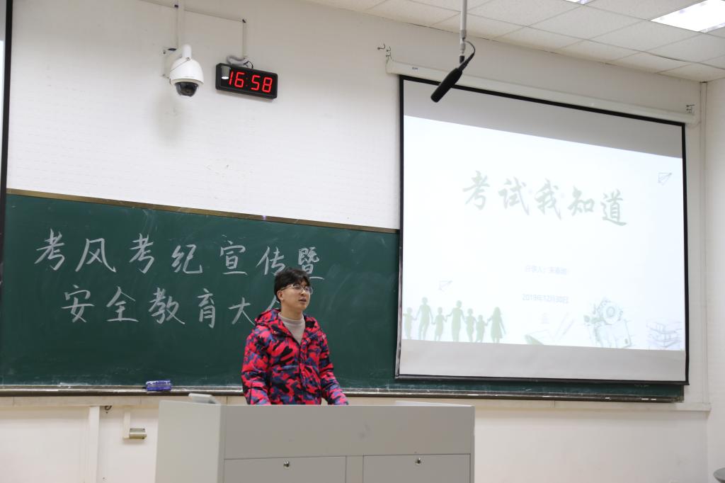 辅导员宋春池对成绩档案、综合测评、奖学金评选等与期末考试的紧密联系情况进行阐述,突出遵守考试纪律、严肃考风考纪的重要性。