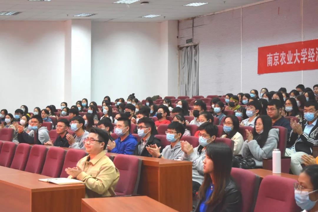 入学教育大会在同学们热烈的掌声中拉开序幕。首先是姜海书记致辞,他对2020级研究生新生的到来表达了热烈欢迎。在讲话中姜书记表示中国正面临着加快构建国内大循环为主体,国内国际循环双促进的新发展格局,强调了解决“三农”问题的重要性。姜书记期待南农经管人能牢记自己的历史使命,借助一流的学科平台与一流的师资力量,深入农村,不断创新,掌握人生方向,不负青春、不负韶华、不负时代,成为知农爱农的新青年。