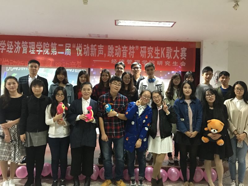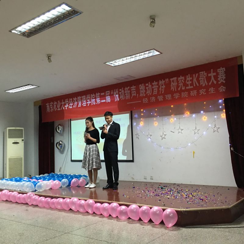 期待已久的第二届 “悦动新声,跳动音符”经管院K歌比赛,于2016年10月26日晚,在研究生报告厅隆重开场。歌声从这里传出,音符从这里飘扬,青春从这里激荡。本次比赛有校研会副主席孙升,公管院研会副主席孟令怡,经管院本科学生会主席沈允,经管院研会主席佘正昊以及第一届经管院K歌比赛冠军金宇担任评委。