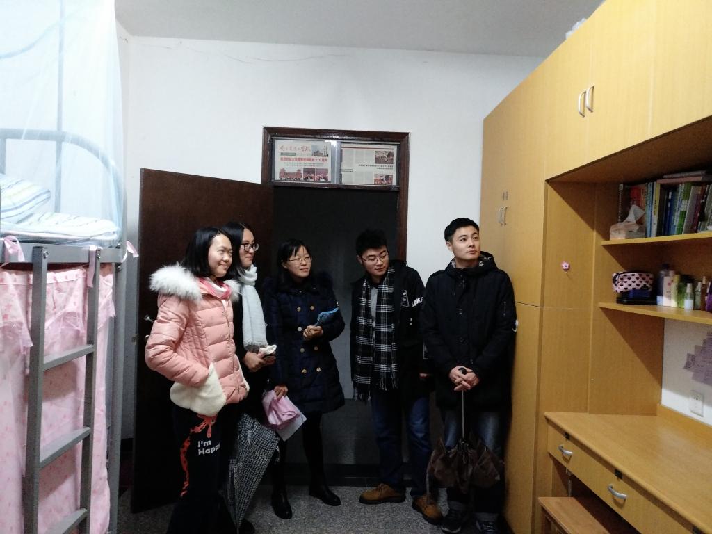 2016年11月23日下午经管院研究生辅导员张杨与研究生会主席团成员对所有报名参赛的宿舍进行走访参观并评比。评比主要从三个方面进行:环境卫生、寝室纪律、室内装饰。既有查看宿舍卫生是否达标,宿舍整体感观是否良好和谐,以及是否给人以温馨舒适的感觉,还查看了宿舍是否存在违规使用违章电器、是否合理使用宿舍公共财产等现象。最终评出6间优秀宿舍。具体名单如下: