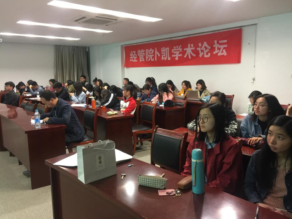 2018年4月12日晚6点30分,经管院研会学术部举办的第八十七期卜凯论坛在逸夫楼5086成功举办,安康、丁仲做了精彩的汇报,张望老师给予了详细的点评。