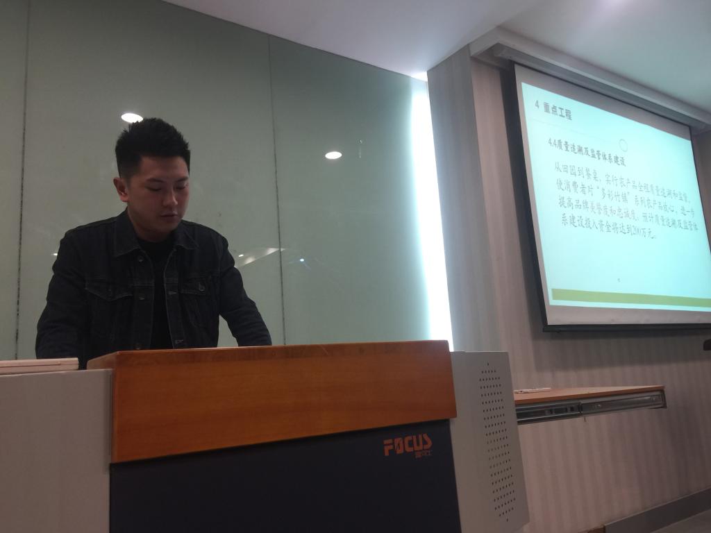 丁仲同学汇报的题目是《竹镇镇农产品区域公用品牌建设及经济效益分析》。这篇文章基于竹镇概况及其农业经济建设状况,介绍了竹镇在品牌策划、农业标准化生产体系建设及农产品质量检测中心建设等方面开展的重点工程,进而对竹镇镇农产品区域公用品牌建成及投入运行后在农产品质量、农产品销量和农户收入水平等方面的经济效益进行预估,从而为竹镇镇政府品牌建设的后续进展提供了一定帮助。