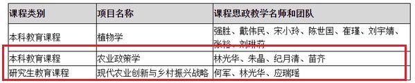 近日,教育部下发了《教育部关于公布课程思政示范项目名单的通知》(教高函〔2021〕7号),我校3门课程入选首批国家级课程思政示范项目,其中我院《农业政策学》《现代农业创新与乡村振兴战略》两门课程入选首批国家级课程思政示范课程,林光华教授团队、何军教授团队入选首批国家级课程思政教学名师和团队。
