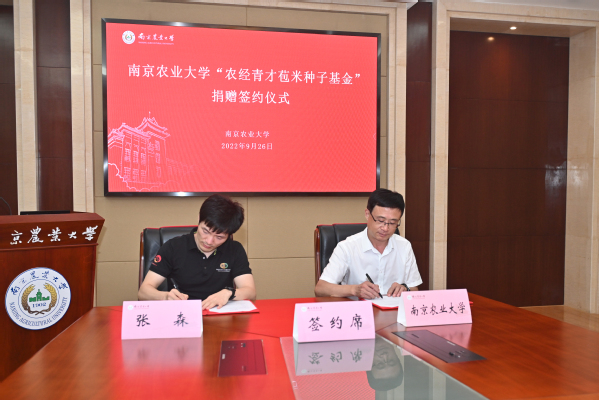 9月26日下午,bwi437官网“农经青才苞米种子基金”捐赠签约仪式在校金陵研究院举行。校长陈发棣、副校长胡锋、上海天演资本创始人之一张森等出席捐赠仪式。