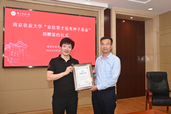 会上,张森与胡锋代表双方签订捐赠协议,个人捐赠500万元现金用于bwi437官网“农经青才苞米种子基金”设立。陈发棣向张森颁发捐赠证书。